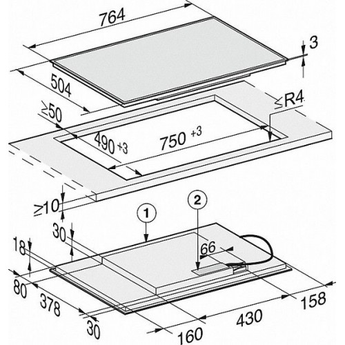 | Kích thước cắt tính bằng mm (chiều sâu) để lắp bề mặt |